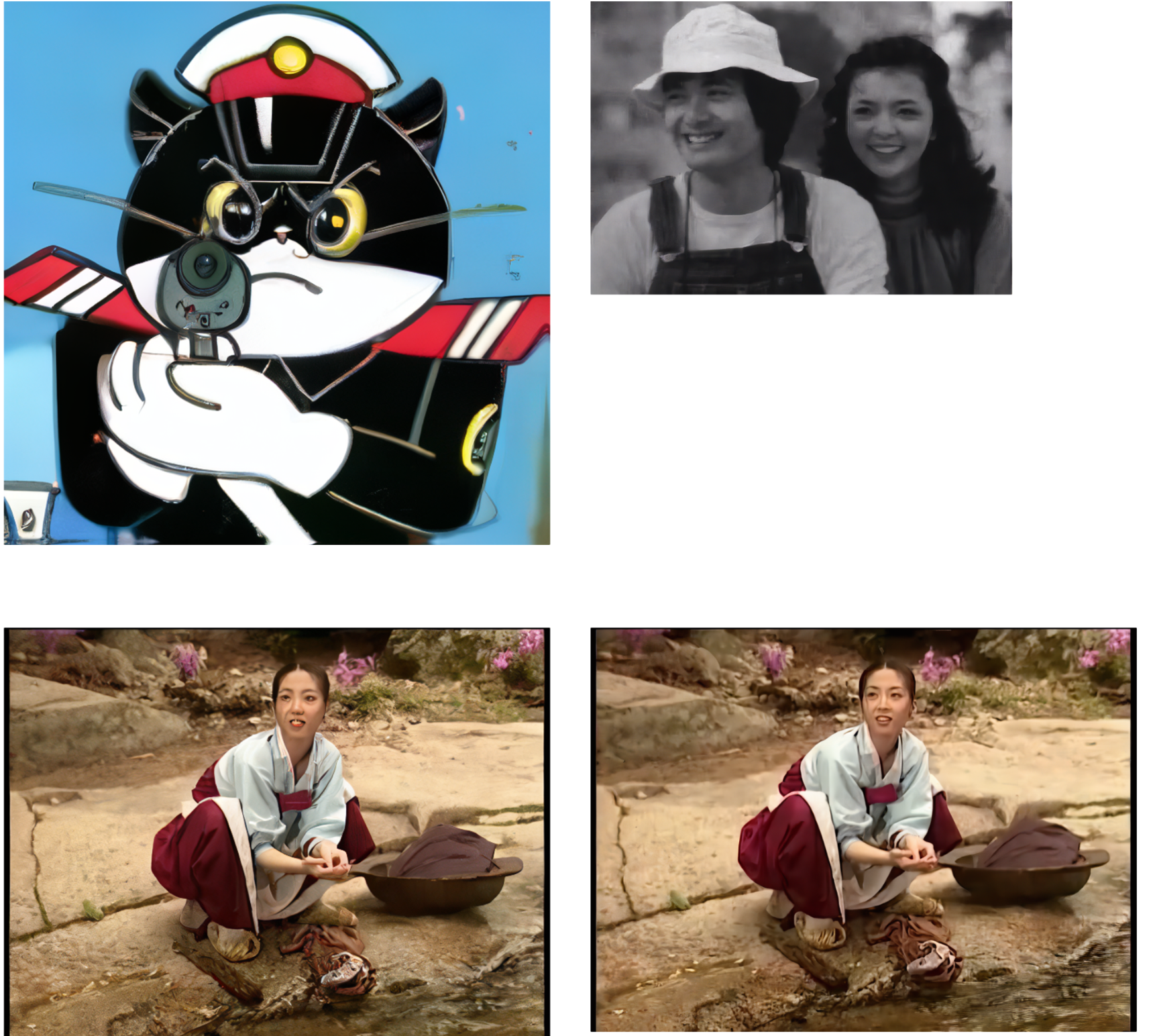 애니메이션처럼 단순한 선들은 기존 이미지 사이즈가 작아도 어느 정도 개선이 됩니다. 하지만 ESRGAN모델에 비해 성능은 떨어집니다.