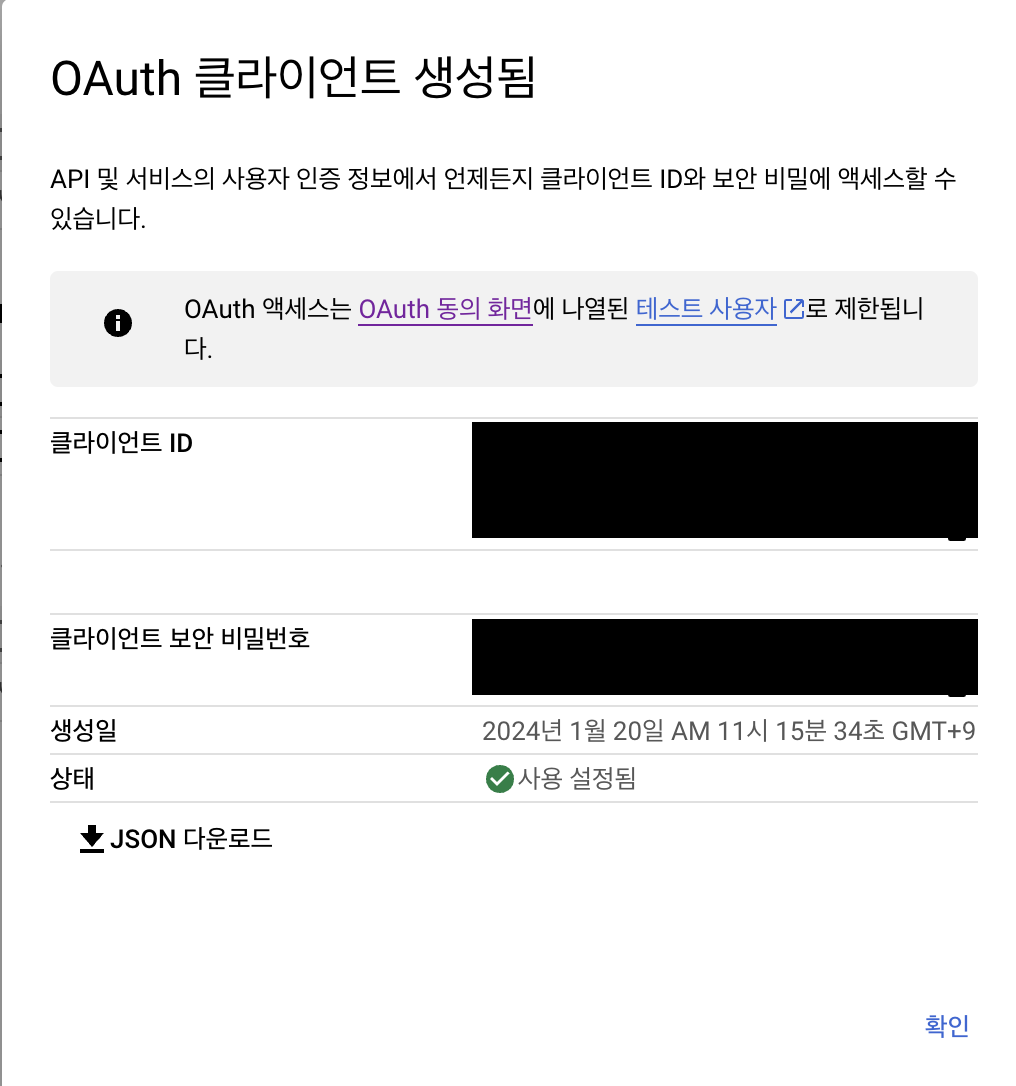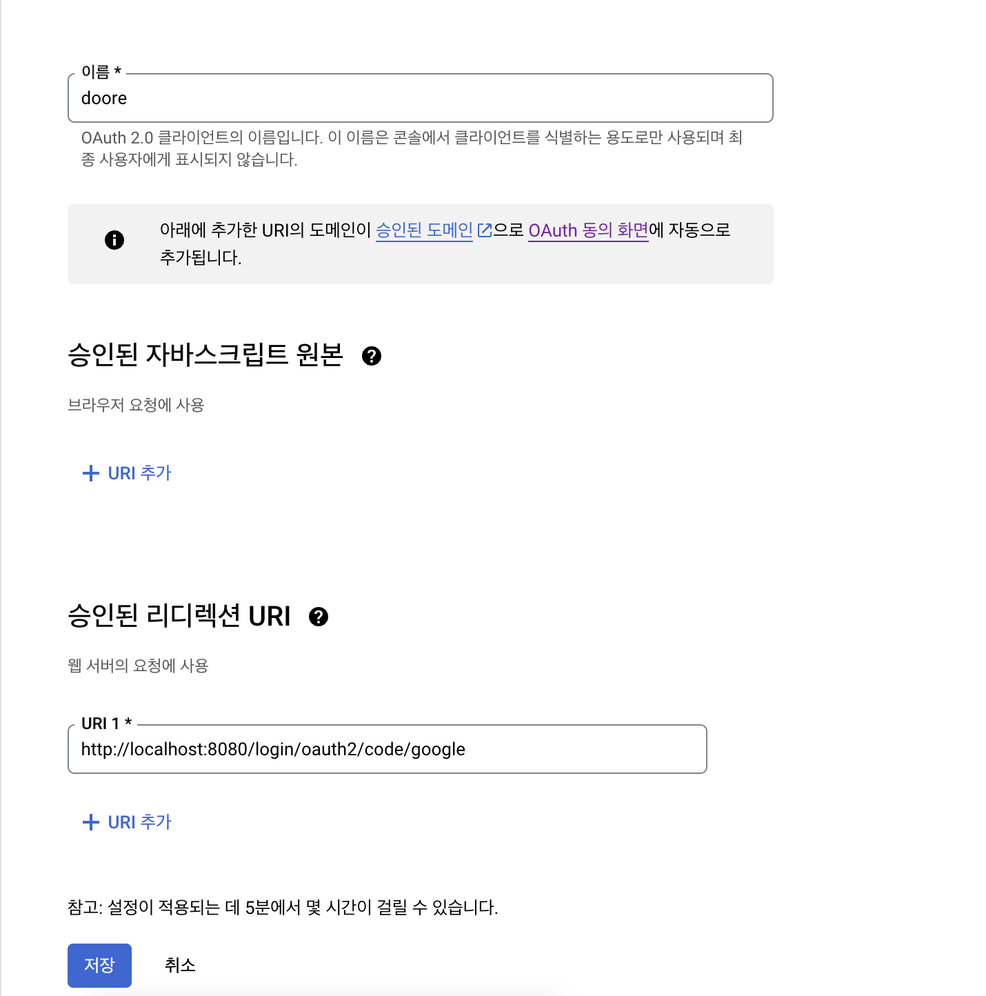 - 승인된 리디렉션 URI: http://localhost:8080/login/oauth2/code/google