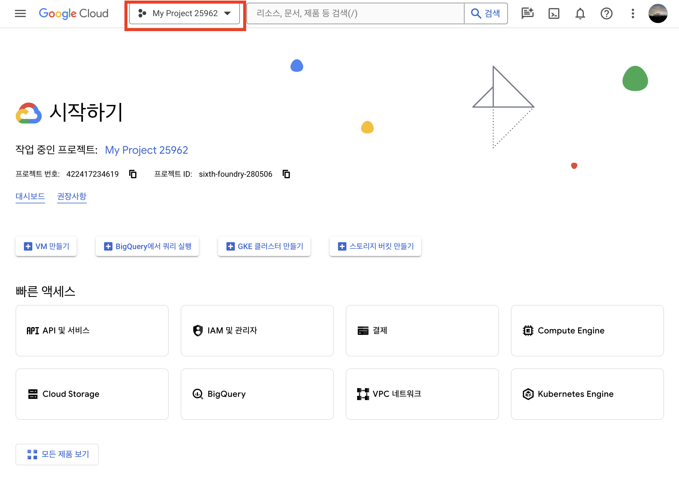 4. 프로젝트가 생성되면 자동으로 해당 프로젝트 대시보드로 이동합니다.