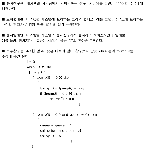 - 봉사창구: 대기행렬 시스템에서 서비스하는 창구로서, 예를 들면, 주유소의 주유대에 해당한다.