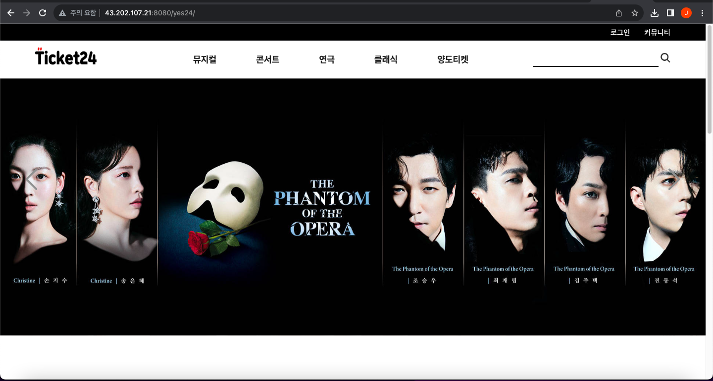 주소 : http://<퍼블릭 ip>:8080/<.war의 파일명>/ ex) http://43.202.107.21:8080/yes24/