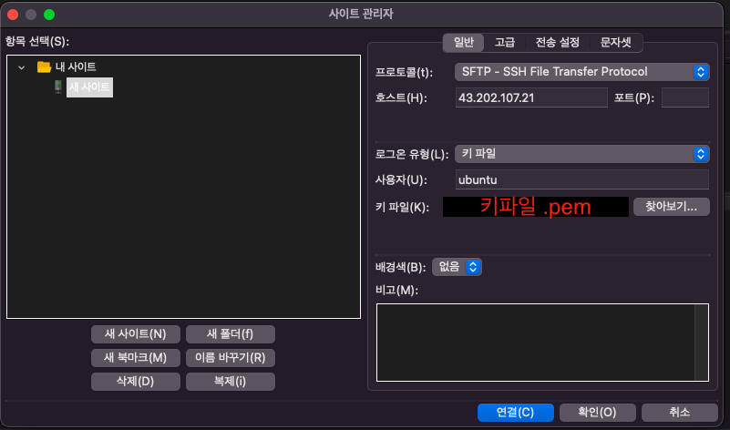 filezilla에 ec2 인스턴스 연결