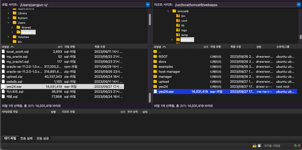 chmod -R 777 /usr/local/tomcat9/webapps : 모든 잡업 가능