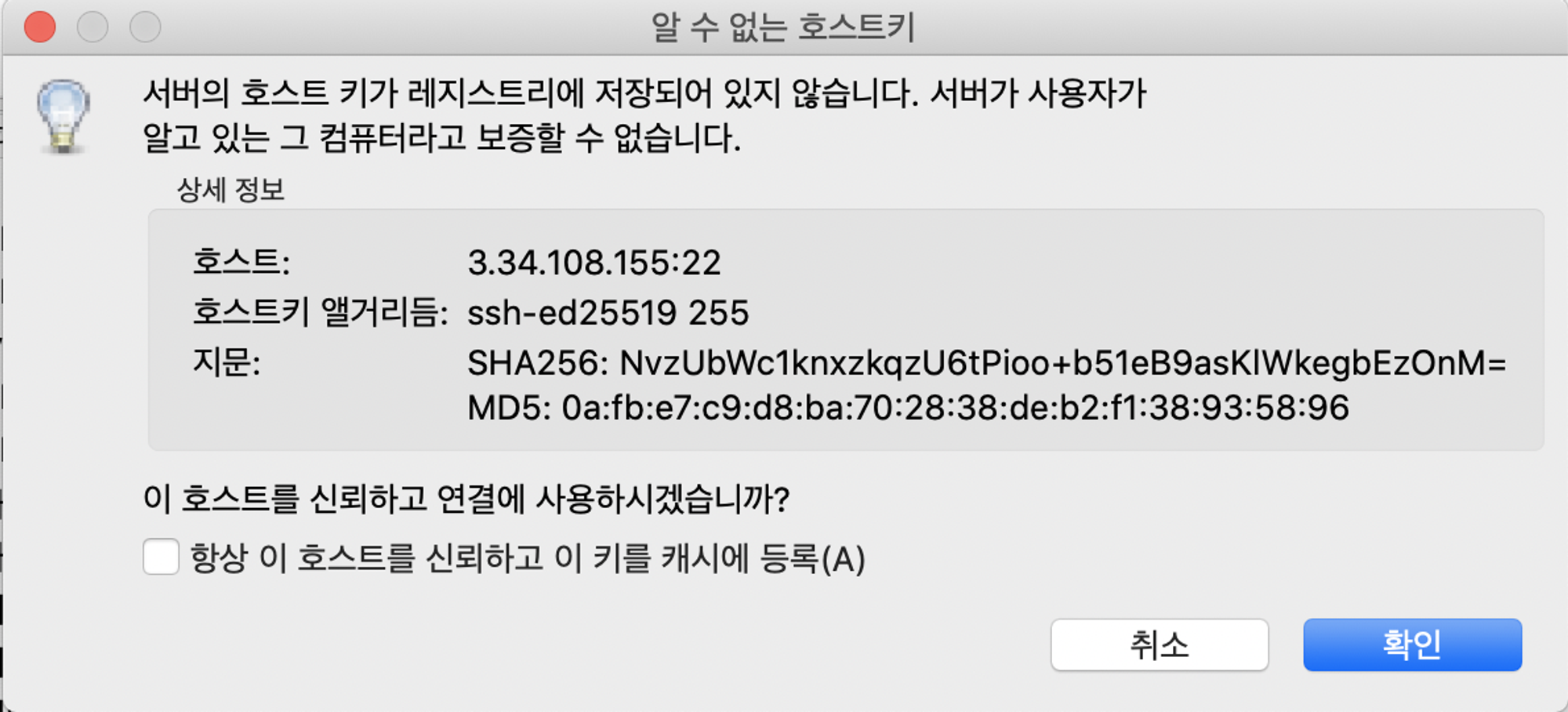 이런 창이 뜨면 확인 클릭(나는 체크하고 클릭하니 되었다..)