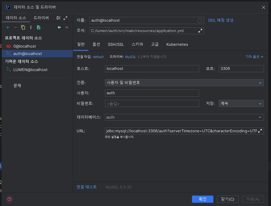 인텔리제이 데이터베이스 연결