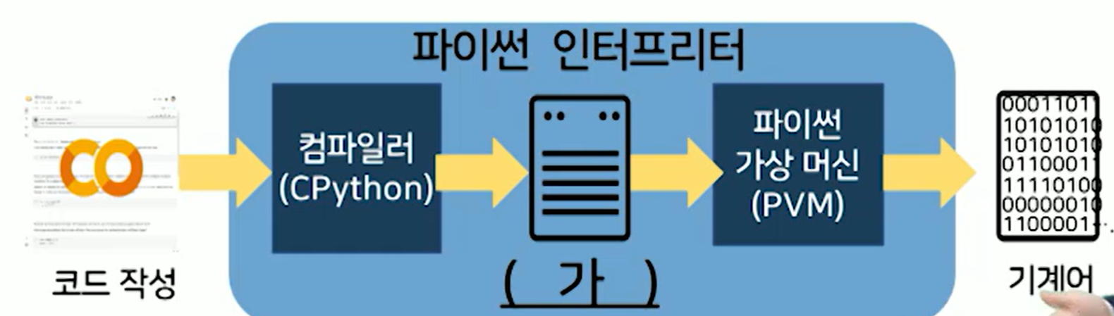 8. 파이썬 프로그램 실행과정에서 다음 밑줄 친 (가)에 들어갈 알맞은 말은? 바이트 코드