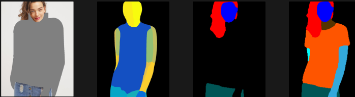 이것은 제공된 데이터로 추론한 결과입니다. 데이터셋을 학습할 때는 인물 마스크, 포즈를 포함하여 학습 해야 하며, 의류에 대해서도 마스크 이미지와 함께 학습해야 합니다.