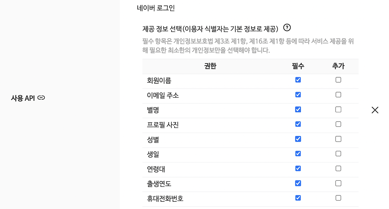 - 애플리케이션 이름 입력 및 사용 API 선택